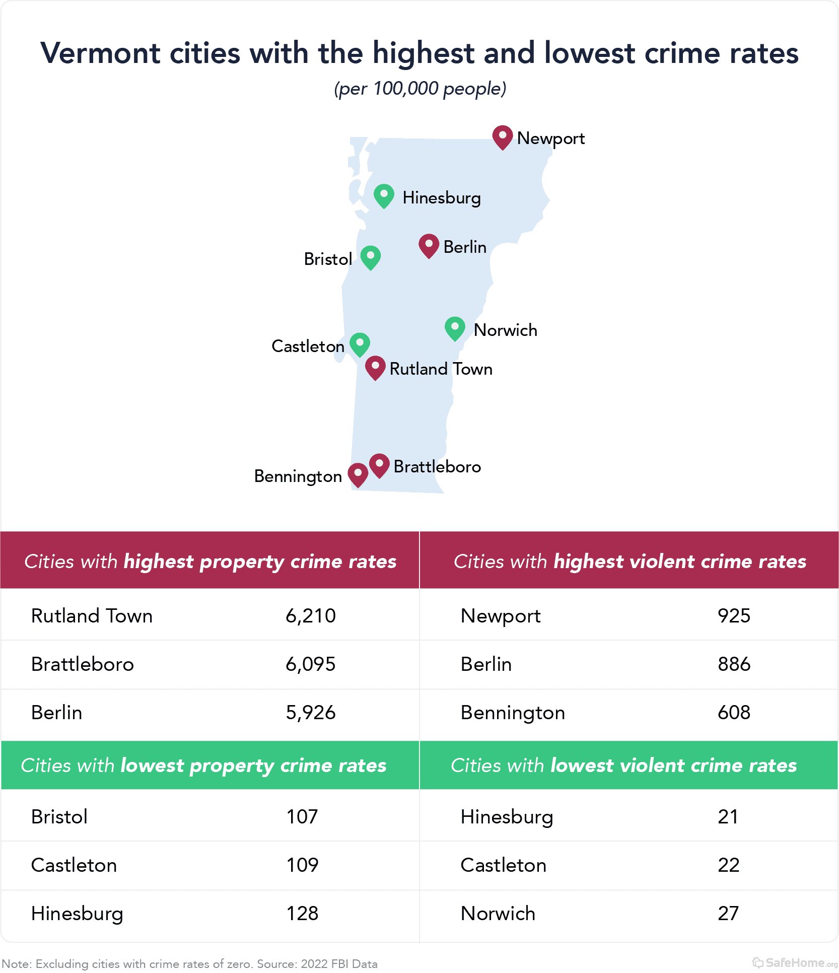 Wondering which parts of the state are safest and where you’re more likely to be the victim of a crime? We’ll break down the numbers to help you understand how Vermont stacks up in different crime categories and reveal the most and least dangerous cities.